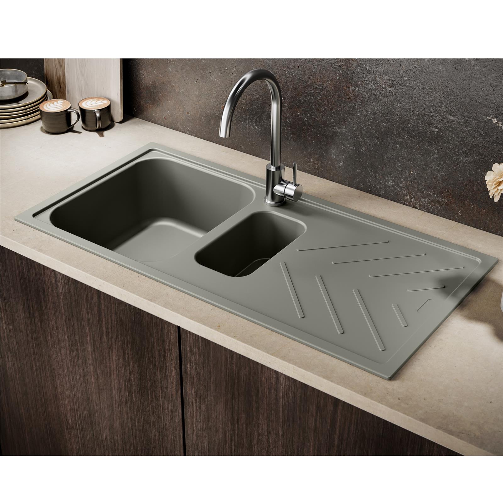 Choose from stainless steel 1.5 bowl sinks for a sleek, contemporary look or granite composite one and a half bowl sinks for added durability and heat resistance. Available in inset and undermount styles, they fit seamlessly into a variety of kitchen layouts and worktop materials.
