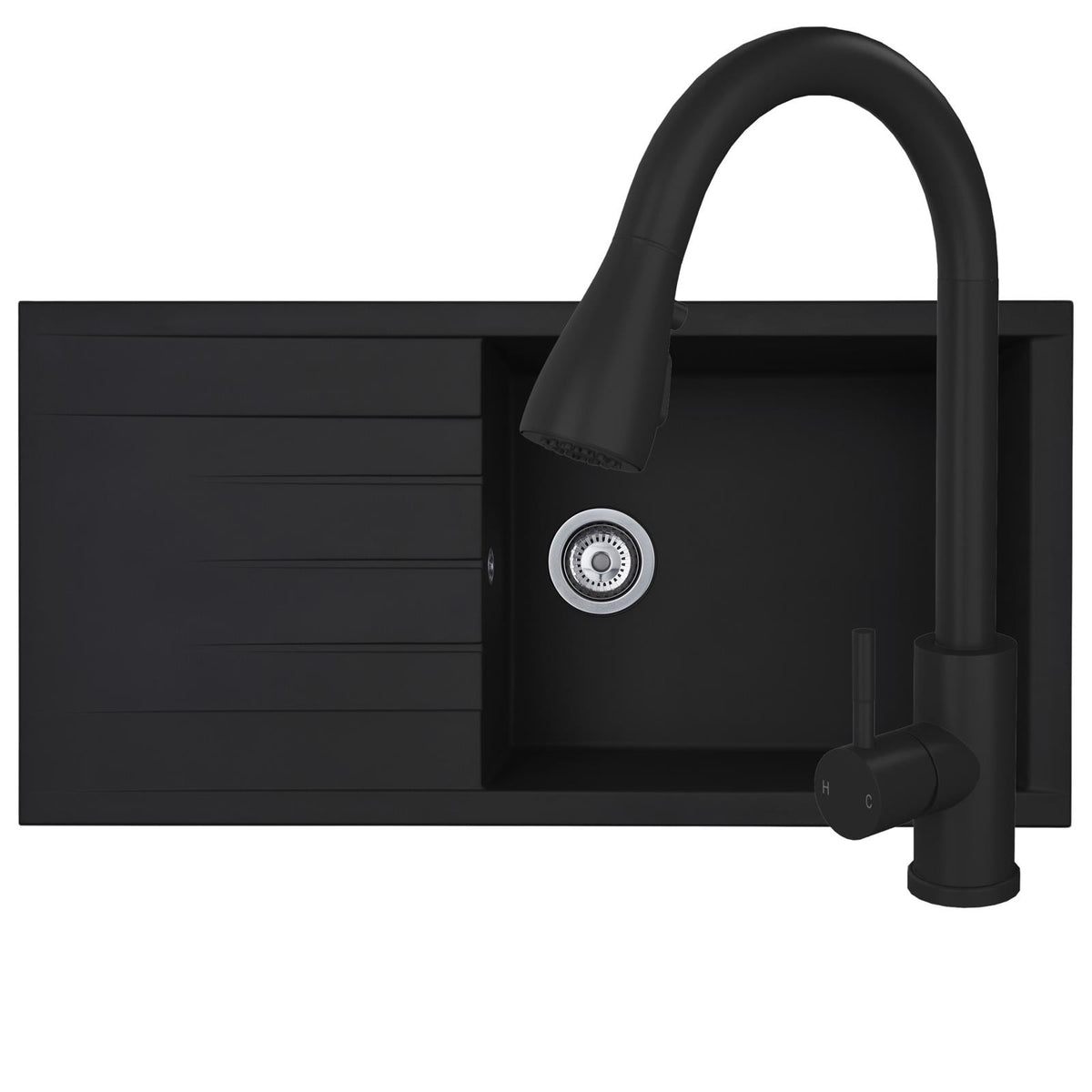 Liquida CU10BL 1.0 Bowl Black Kitchen Sink With KPO11MB Black Pull Out Tap