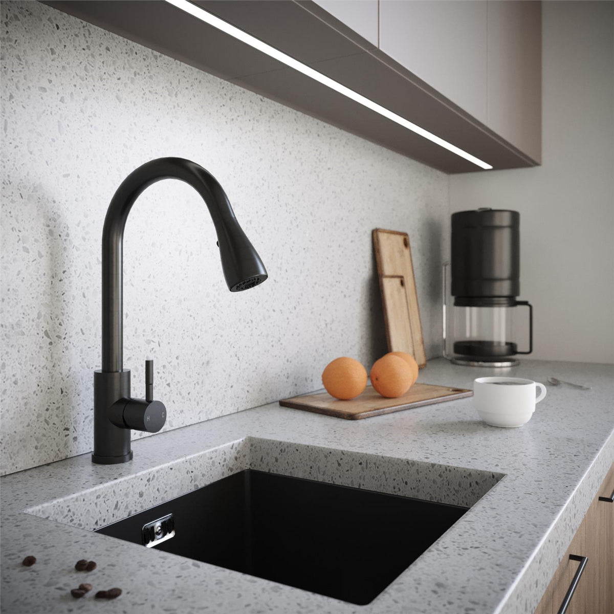 Experience a blend of style and functionality with the built-in features of a pull-out spray and swivel spout, making the Liquida KPO11MB the perfect choice for a fashionable and practical kitchen sink mixer.